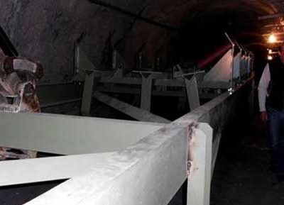 Пробни рад у јулу Навлачење транспортне траке, монтажа и спајање топлом вулканизацијом почело половином маја. – Монтирају се регали дуж целог тунела ...