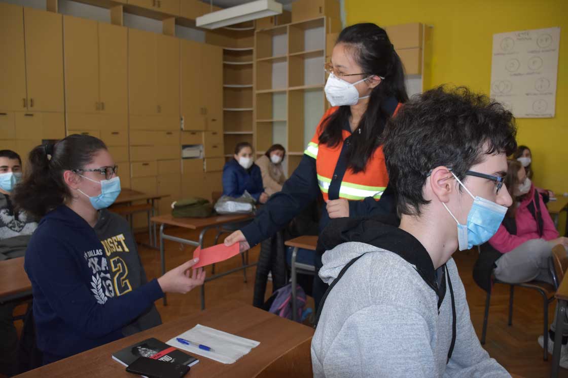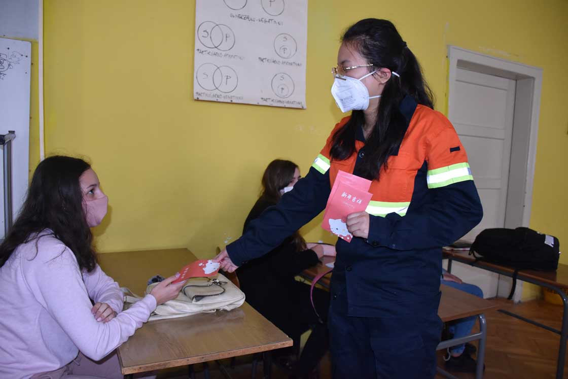 Добродошлицу у земљу чудесних кинеских знакова гимназијалцима је пожелела Yajing Tang, која је иначе професор кинеског језика и сарадница је у Кабинету генералног директора Serbia Zijin Copper. На првом часу, госпођица Танг је ђацима објаснила еволуцију кинеских знакова и научила их да се представе и поздраве на кинеском језику.