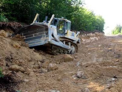 Један од два багера изашао из копа Док се чека разрешење преосталих имовинско-правних односа, рудари насипају управо просечен и проширен пут тврдим ...