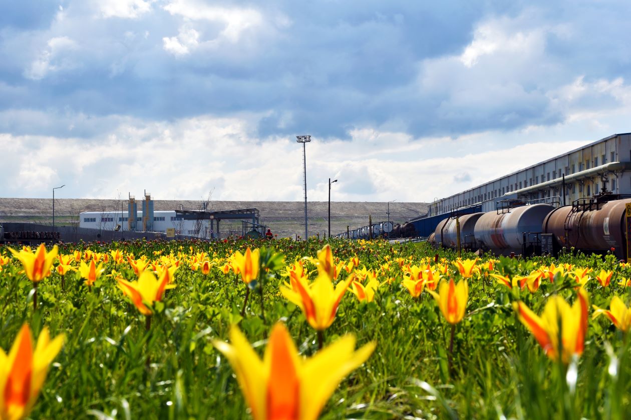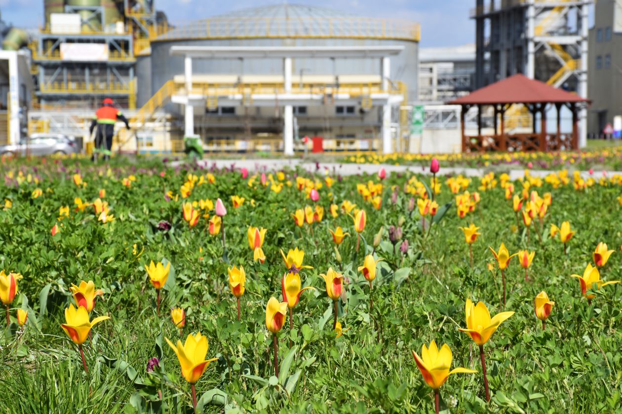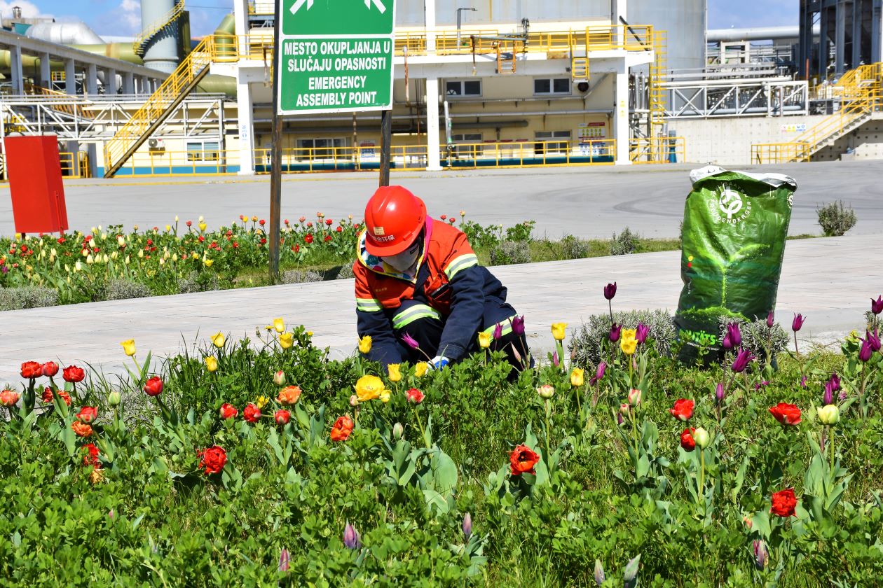 На око хиљаду квадрата простора између постројења за одсумпоравање и нове електролизе посађено 15 хиљада луковица, а код капије ТИР-а још 10 хиљада