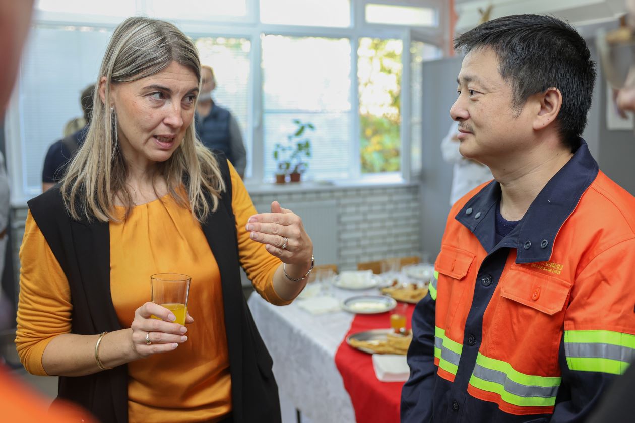 – Настојимо да кроз различите пројекте и стипендије, али и путем партнерства са образовним установама допринесемо бољој будућности за младе. Драго ми је што нас је руководство школе позвало да разгледамо реновирани кабинет куварства, јер овде нисмо први пут и знамо како је он изгледао раније. Почели смо данас разговоре и о дуалном образовању, па се надам да ћемо дати подстрек развоју и овог начина школовања – рекао је представник Канцеларије за ЕСГ у Србија Зиђин Копер Фенг Куи.