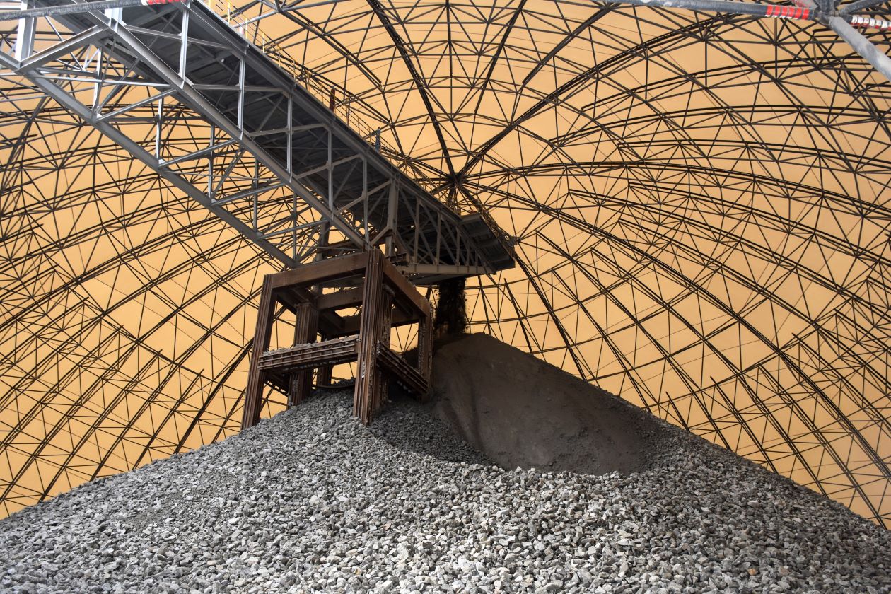 ФЛОТАЦИЈА КРИВЕЉ. – Не, то пред вратима нове кривељске флотације није спортска балон хала, мада личи. Огромни балон од ПВЦ платна покрива руду која је на путу од кривељског копа до новог ПМС погона прошла први степен дробљења. Дакле, реч је о складишту руде која чека да буде самлевена и прерађена у концентрат. До балон хале, која се налази на истом месту где је раније био отворени склад, руда путује двема тракама које се завршавају на „мосту“. Одатле пада на депонију, али притом не ствара облаке прашине као некада, јер је од октобра прошле године складишни простор комплетно покривен. Балон хала простире се на 5.125 квадратних метара.