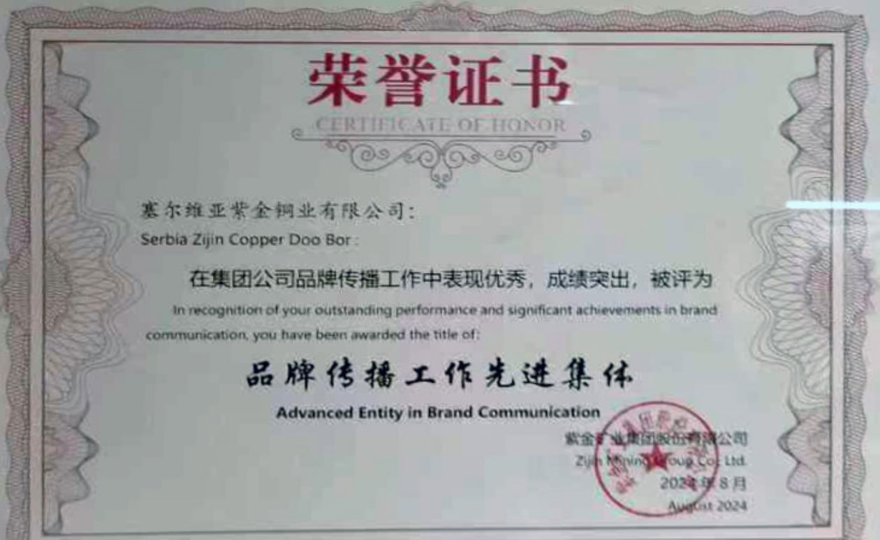Директно из кинеског Сјамена, где је у току семинар о бренд комуникацији и кризном менаџменту за запослене у подружницама Зиђина у свих 16 земаља, стижу лепе вести у Србију. Србија Зиђин Копер једна је од четири прекоморске операције Зиђин Мајнинг Групе које су проглашене изванредним у области брендинга и ПР-а.