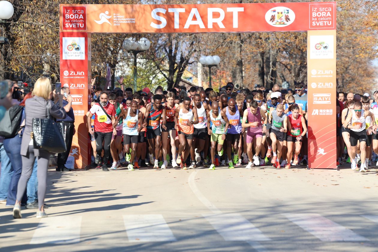 БОР. – У граду који је последњих година (п)остао домаћин бројних манифестација које инспиришу, другог новембра одржан је „Борски Зиђин међународни полмаратон“. Под слоганом „Из срца Бора ка целом свету“ 745 такмичара из Етиопије, Сомалије, Кеније, Русије, Кине, Чешке, Мађарске, Словачке, Бугарске, Србије, Босне и Херцеговине, Црне Горе и Северне Македоније трчало је по лепом и сунчаном времену од седишта Србија Зиђин Копер до хотела „Језеро“ на Борском језеру. У јединственом и најмасовнијем спортском догађају у југоисточној Србији учествовали су атлетичари, рекреативци, спортски ентузијасти из 15-ак земаља света, али и генерални директор Србија Зиђин Копер и чланови топ менаџмента компаније.