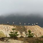 НОВО ЦЕРОВО. – Запослене у најмлађем руднику Србија Зиђин Копер јутрос је на капији сачекало упозорење обезбеђења да обрате пажњу на „незване госте“. „Много их је, успели смо да избројимо 18, али их пас Миле и даље јури, вероватно би да се игра са њима“. Ко су „гости“ било је јасно свима чим су крочили у „Ново Церово“. Са обе стране пута ка површинском копу, стражу су у шпалиру чувале беле роде. Неке су стајале на стубовима расвете, неке су са ивице планира радознало посматрале прву смену рудара, а већина је истраживала рекултивисане и озелењене површине преко пута. Несвакидашњи призор није покварило кишовито и магловито јутро, а ни Миле, који је весело махао репом и трчкарао око ногу радника.