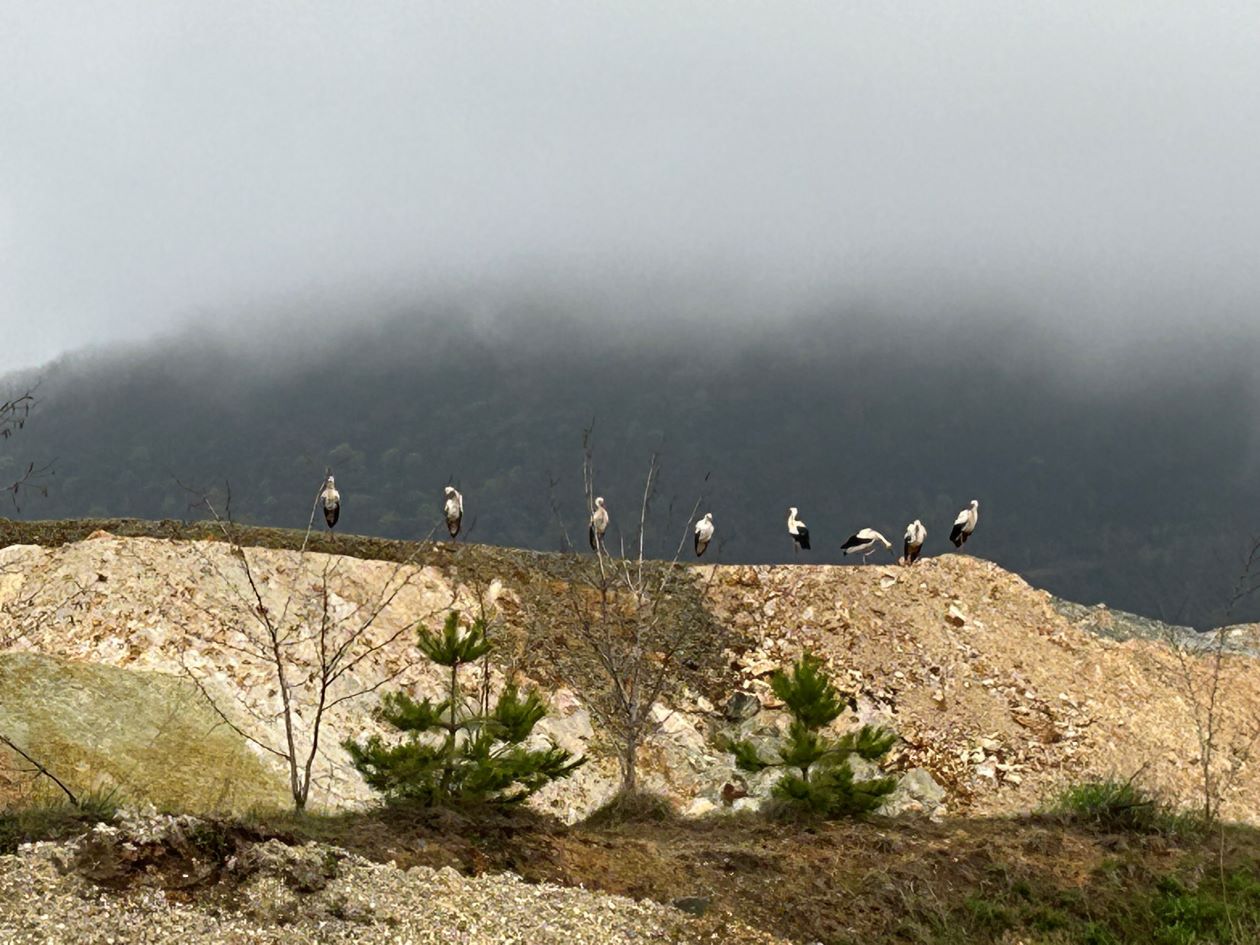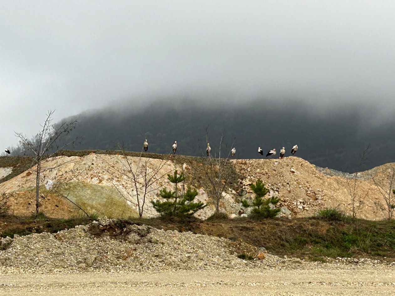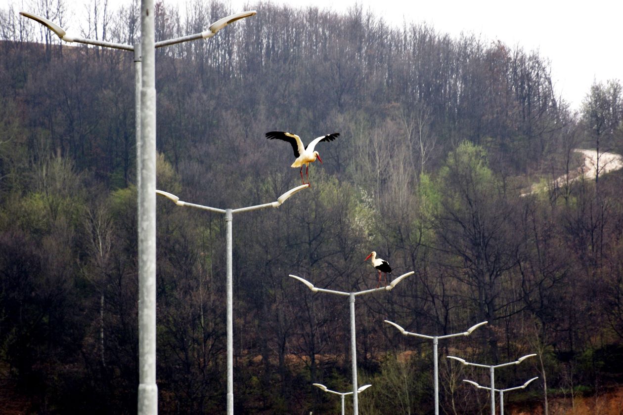 НОВО ЦЕРОВО. – Запослене у најмлађем руднику Србија Зиђин Копер јутрос је на капији сачекало упозорење обезбеђења да обрате пажњу на „незване госте“. „Много их је, успели смо да избројимо 18, али их пас Миле и даље јури, вероватно би да се игра са њима“. Ко су „гости“ било је јасно свима чим су крочили у „Ново Церово“. Са обе стране пута ка површинском копу, стражу су у шпалиру чувале беле роде. Неке су стајале на стубовима расвете, неке су са ивице планира радознало посматрале прву смену рудара, а већина је истраживала рекултивисане и озелењене површине преко пута. Несвакидашњи призор није покварило кишовито и магловито јутро, а ни Миле, који је весело махао репом и трчкарао око ногу радника.