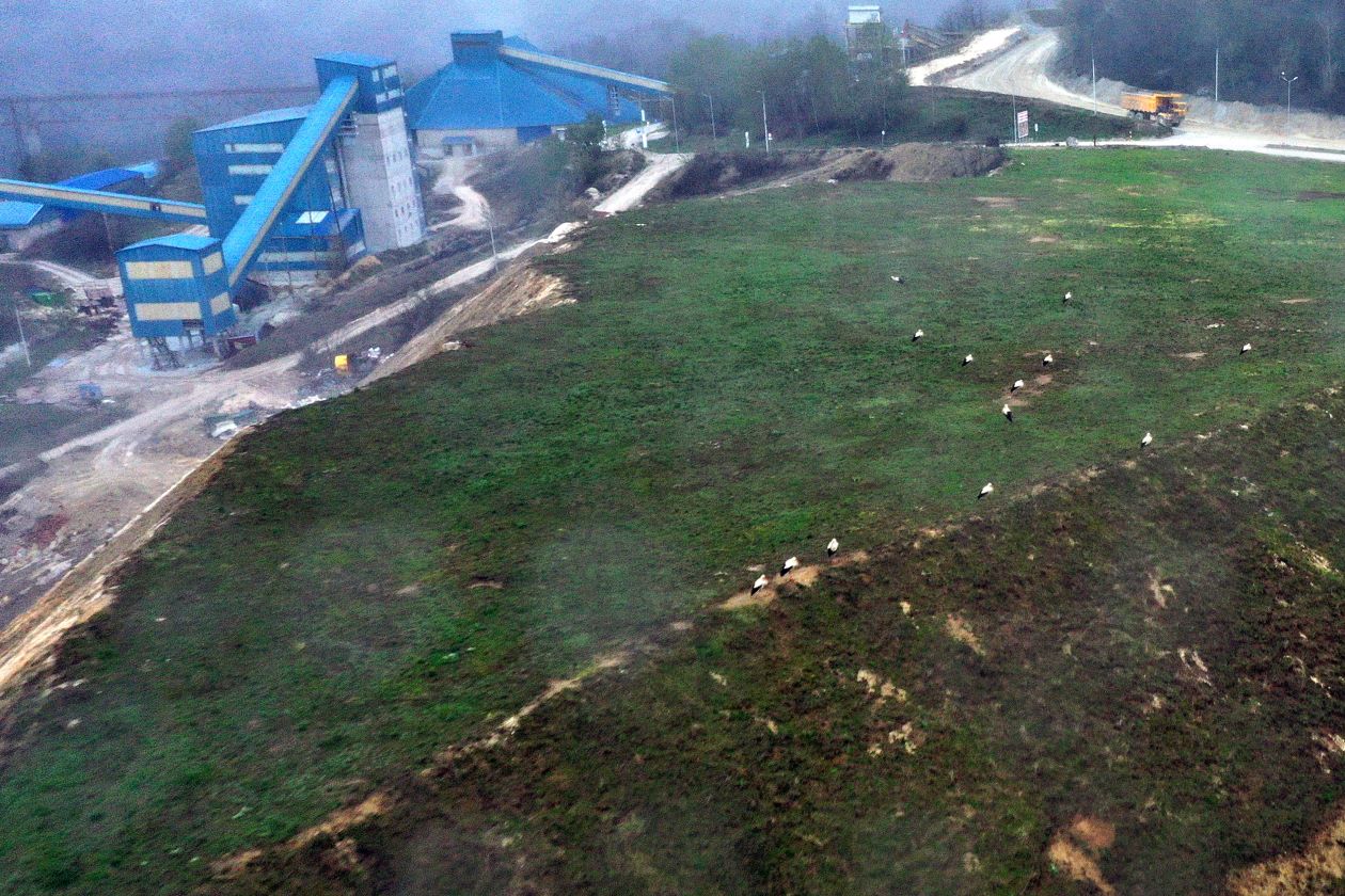 Са обе стране пута ка површинском копу стражу су јутрос у шпалиру чувале беле роде. Неке су стајале на стубовима расвете, неке су са ивице планира радознало посматрале прву смену рудара, а већина је истраживала рекултивисане и озелењене површине преко пута. – Много их је, успели смо да избројимо 18, али их пас Миле и даље јури, вероватно би да се игра са њима, гласио је рапорт службе обезбеђења