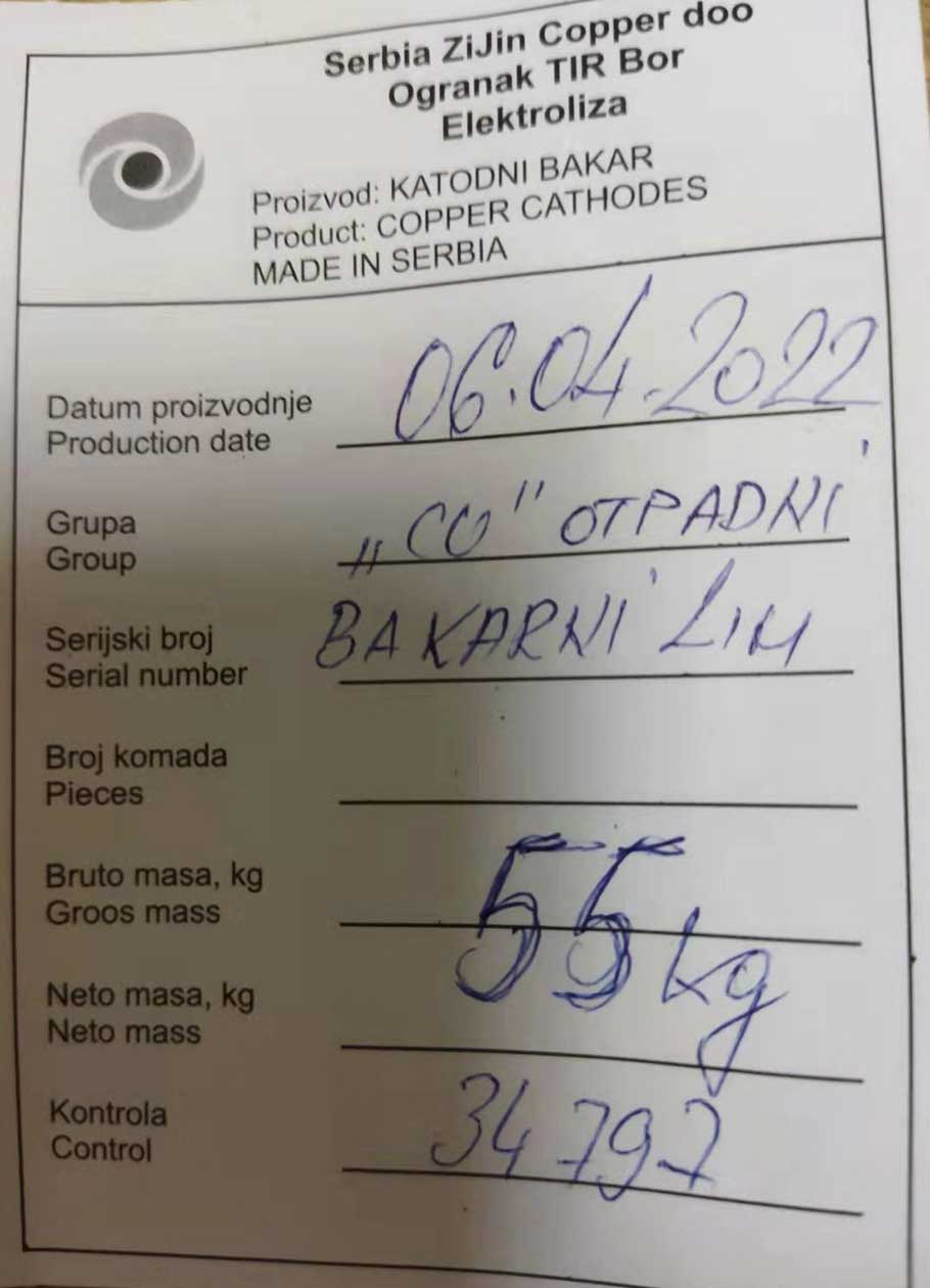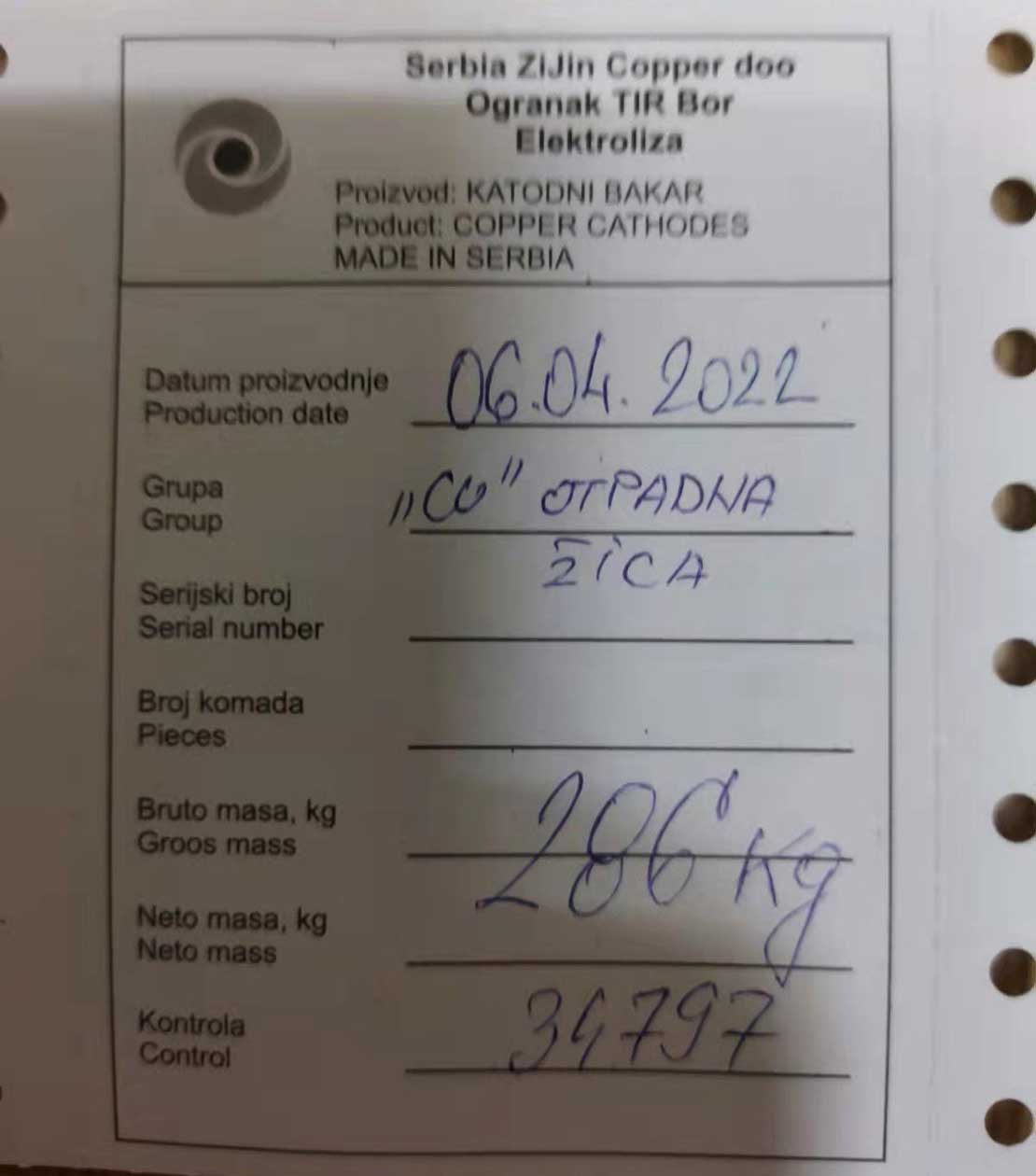 Полиција је приликом претреса домаћинства Д.Г. у околини Бора, у дворишту пронашла 93 тоне и 480 килограма бакарних одливака, а истога дана је и у комбију којим је овај Боранин управљао пронашла још 286 килограма жице и делова каблова, као и 55 килограма бакарних лимова и катодних листова. – Украдена роба враћена у Serbia Zijin Copper