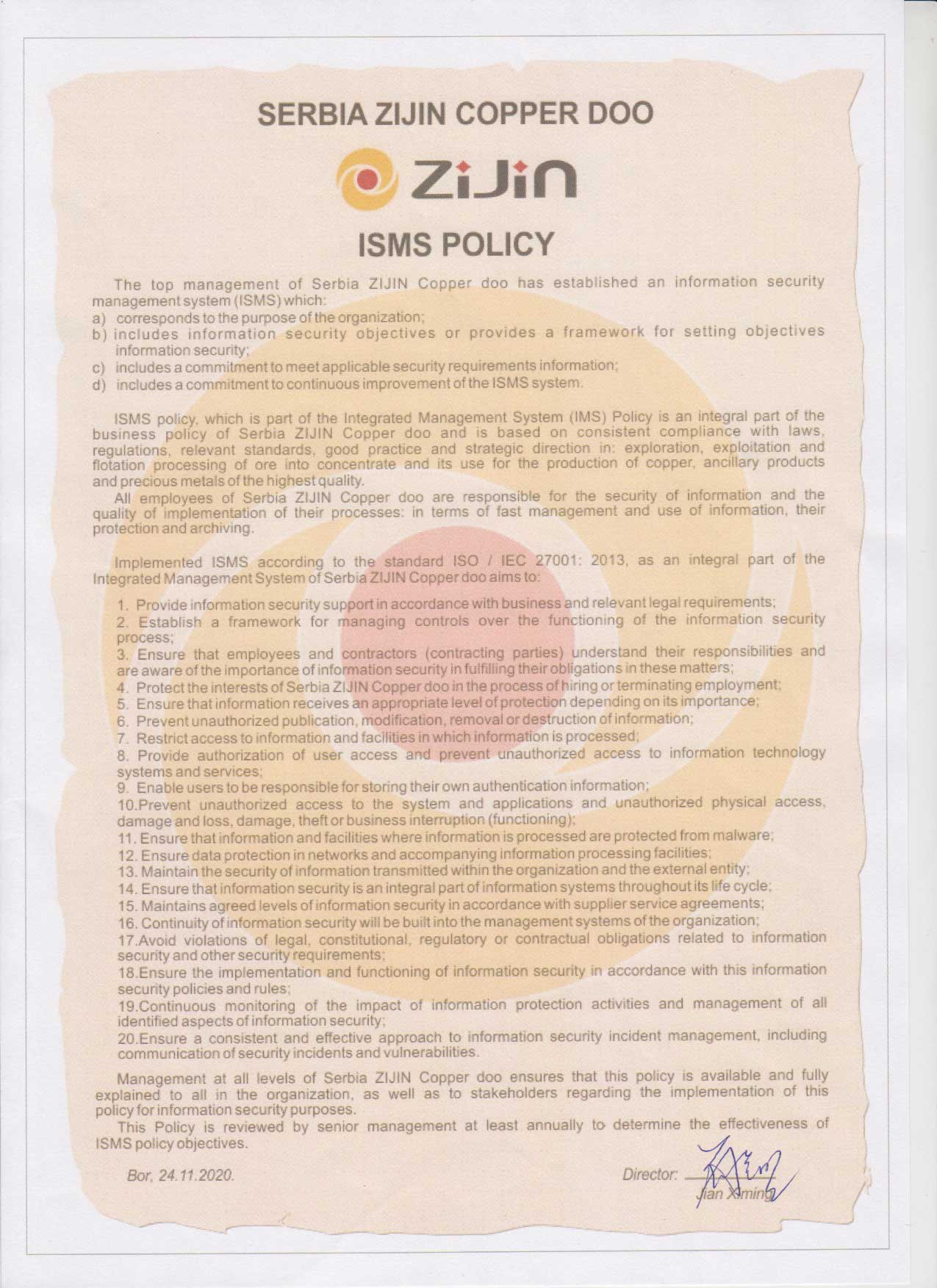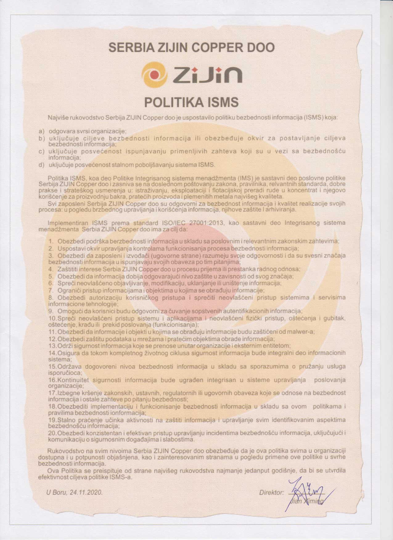 Politika ISMS engleski
