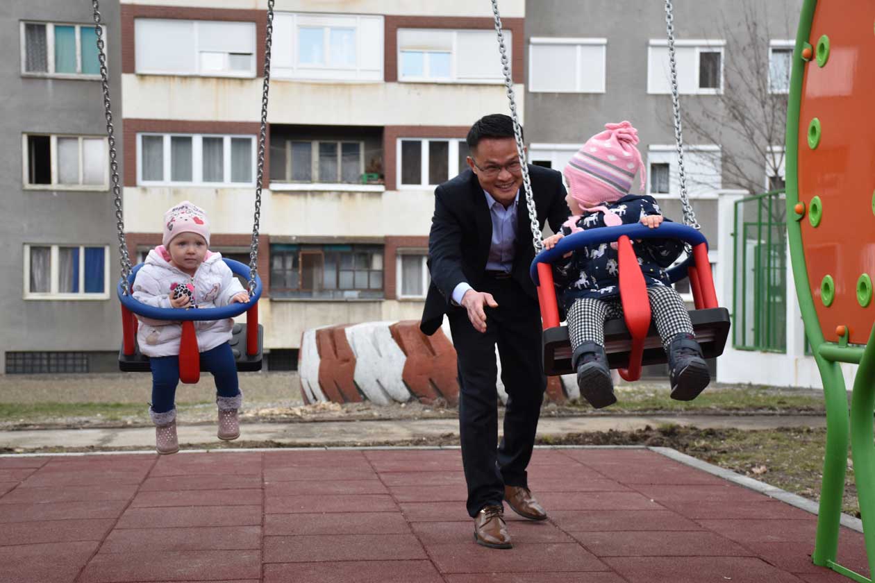 – Деца заслужују посебну пажњу, јер су нада локалне заједнице и будућност земље. Због тога, пре свега, треба да им обезбедимо безбрижно детињство. Малишанима вртића „Црвенкапа“, али и осталој деци, желим у име компаније безбрижне и радосне дане на овом лепом игралишту – казао је Simon Ling на манифестацији која је уприличена данас поводом завршетка изградње дечијег парка, у „срцу“ града.