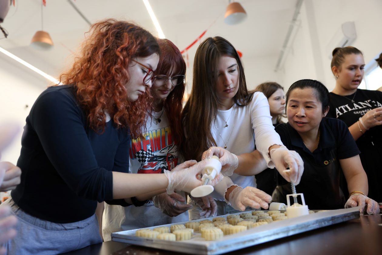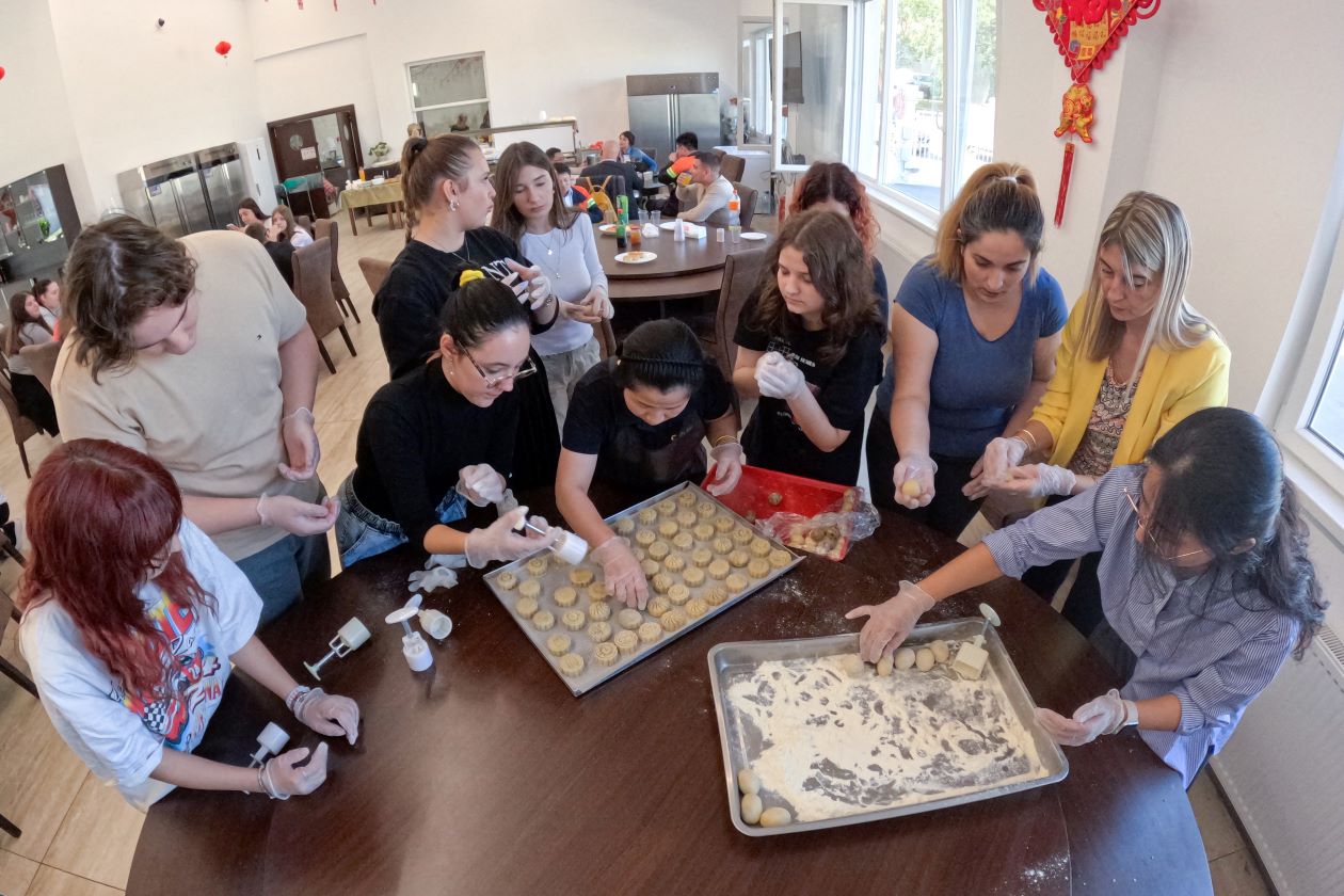 БОР. – У светлу обележавања Јесењег фестивала, Кабинет генералног директора Србија Зиђин Копер угостио је данас 60-ак ученика Економско-трговинске школе у Бору. Ђаци друге, треће и четврте године, који се школују за куваре и туристичко-хотелијерске техничаре, имали су прилику да се упознају са кинеском традицијом и обичајима који прате овај весели празник, као и да у кантини “Истра куле” науче да умесе “месечев колач”.