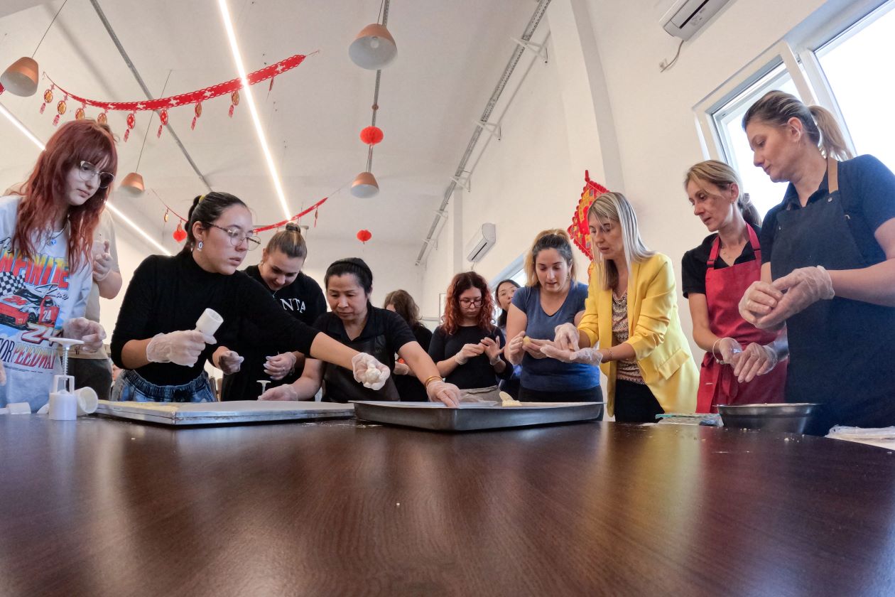 Александра Шароњић, која се три године школује за кувара, каже да досад није имала прилику да направи кинеско пециво, одушевљена је начином припреме, али и гостопримством. Њена годину дана млађа другарица Драгана Вацић, будући туристички техничар, додаје да је за све њих то једно интересантно искуство. – Било је веома забавно и не толико тешко умесити колач. Нисмо навикли на такво тесто, па је било мало теже савладати га. Први пут сам у оваквом ресторану и баш ми се свиђа.