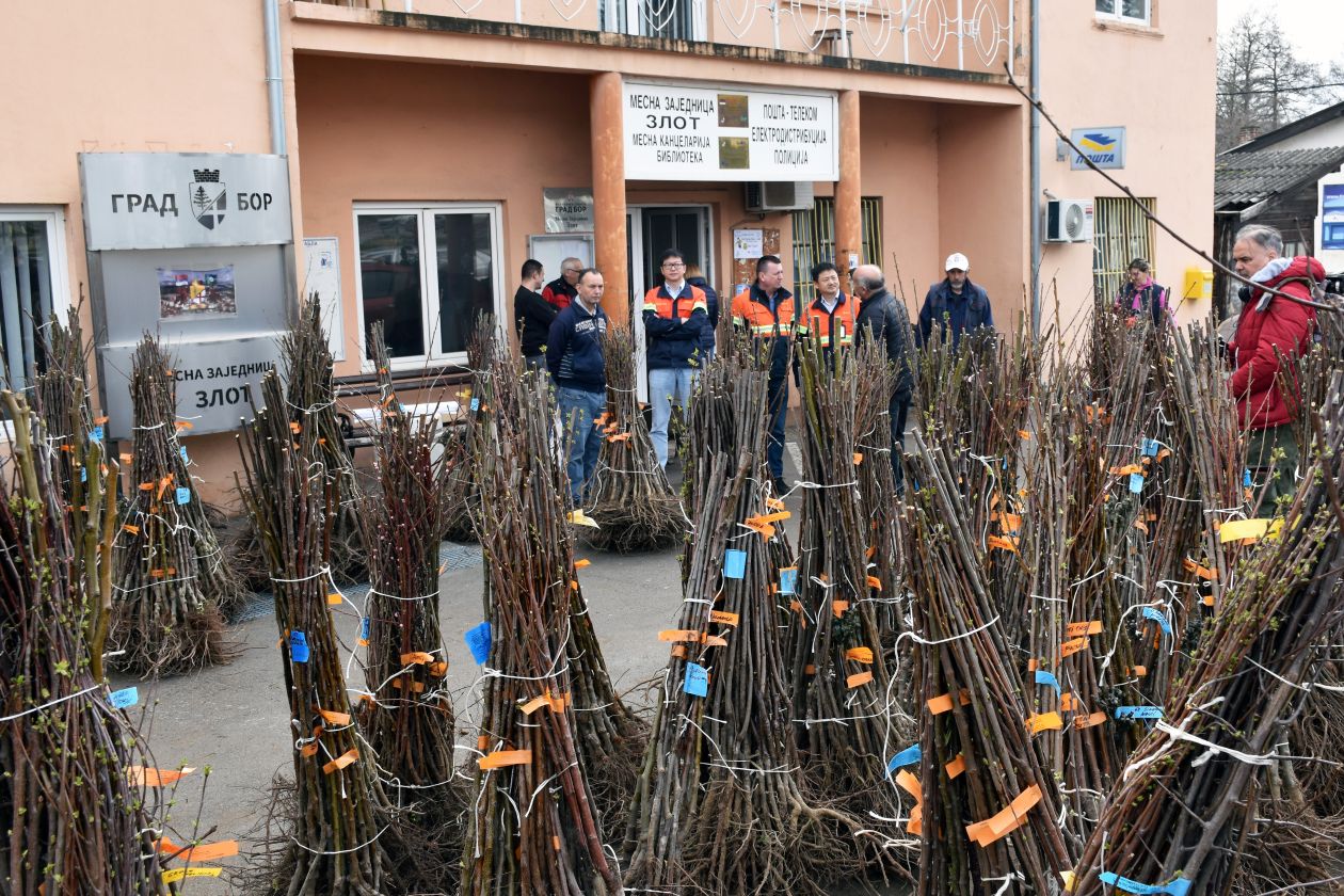 ЗЛОТ. – У оквиру пилот пројекта под називом „Оснаживање пољопривредних газдинстава у селу Злот“, који у сарадњи са Србија Зиђин Копер реализује Бизнис инкубатор центар у Бору, регистрованим пољопривредним газдинствима у овом селу данас је уручено преко седам и по хиљада садница воћа и лозних калемова.