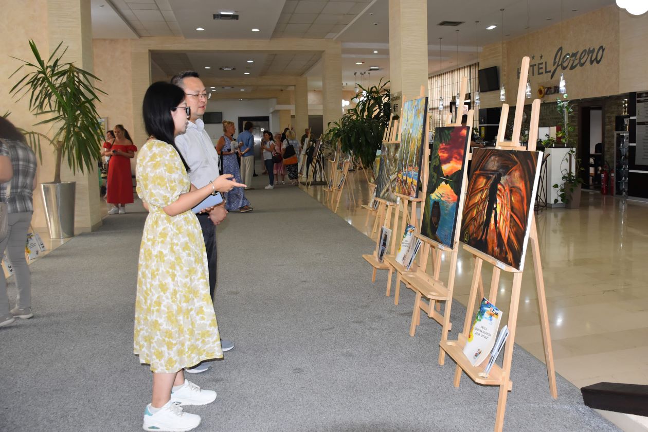 БОРСКО ЈЕЗЕРО. – У хотелу „Језеро“ на Борском језеру отворена је (2. августа) изложба радова насталих током ликовне колоније “Зиђин Арт 2024” која је окупила 50 сликара из целе Србије. Љубитељима лепе уметности представљене су 53 слике рађене техником по избору, на којима су приказани копови, флотације али и живописни пејзажи Бора, Мајданпека и Борског језера. Поставка ће красити хол хотела до краја августа, а заувек ће сведочити о трансформацији рударске индустрије. Изложбу је пред бројним посетиоцима свечано отворио руководилац канцеларије за ЕСГ Србија Зиђин Копер Хан Хуанг.