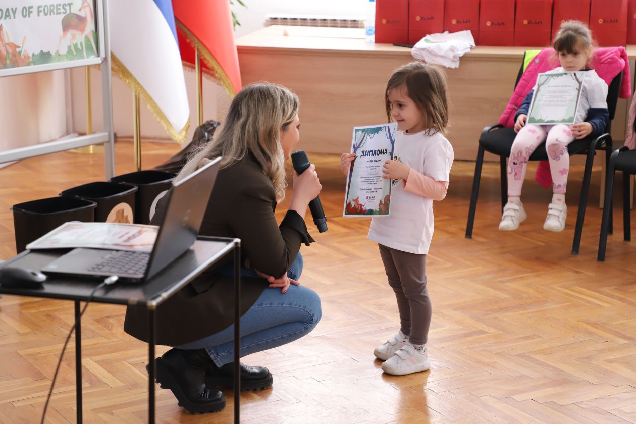 Деци смо кроз игру показали како да правилно рециклирају и штеде папир и указали им на значај очувања животне средине. Објаснили смо им да шуме прочишћују воду, пружају живот биљкама и животињама, штите градове и села од поплава, снабдевају водотокове, чувају тло и штите га од ерозија, исушивања, клизања. Поклонили смо им и по једну садницу црног бора, коју ће са родитељима или васпитачима моћи да посаде где год желе, а на крају дружења положили су и „еколошку заклетву“ – додала је Барбуловићева.