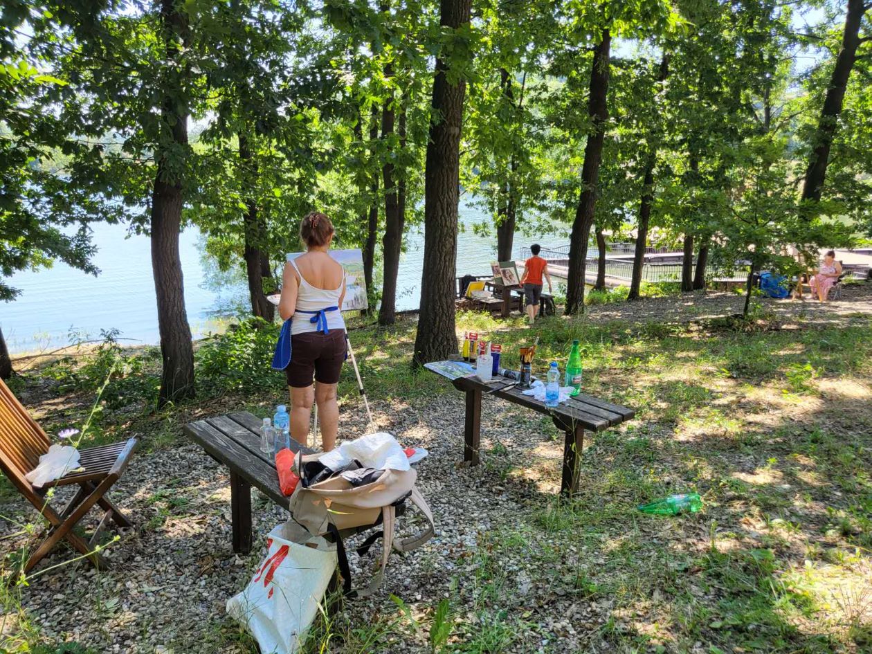 Сликарка Александра Ковачевић допутовала је у Бор и на Борско језеро из Чачка. „Било је ми је занимљиво и интригантно да дођем на Борско језеро, а надам се да ће ми све то што будем видела први пут бити и инспиративно. Пејзажи језера су дивни, али мене интересују рудници, површински копови и сва она места где човек тражи нешто што још увек није нашао.“